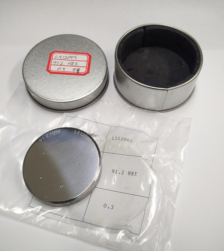 Мера твёрдости (стандартный образец) для определения твёрдости пластмасс по Роквеллу с использованием шкалы E (HRE) согласно ГОСТ 24622-91.