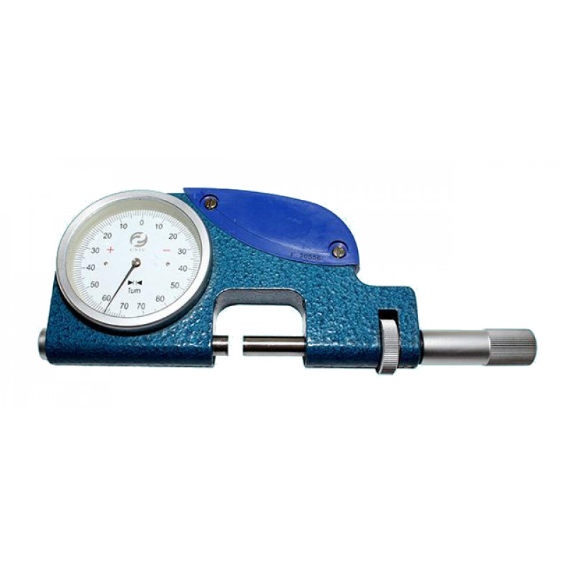 Продольно вводимый измерительный щуп отводится обратно кнопкой-рычагом отвода. Противоположный щуп точно регулируемый. Пятки щупов оснащены твердым сплавом. Скоба имеет теплоизолированные накладки. Снабжена сменным регулируемым центрирующим упором для установки на измеряемого изделия. Прибор обеспечивает постоянное измерительное усилие, что важно для повторяемости измерений.