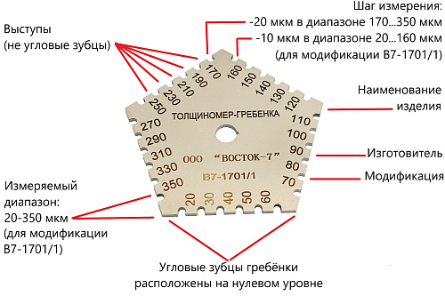 Толщиномер-гребёнка выбранной модификации |