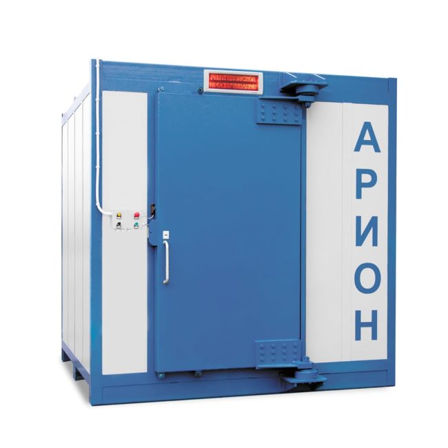 Камера радиационной защиты Арион-25.22.22.16 оснащена системой вытяжной вентиляции, блокировкой самопроизвольного открывания двери, а также блокировкой включения рентгеновского аппарата при открытой двери. Внутри и снаружи камеры установлены кнопки для аварийного отключения рентгеновского аппарата. Для индикации режимов работы рентгеновского аппарата имеется световое табло «Рентгеновское просвечивание». Для ввода кабеля питания и управления рентгеновским аппаратом предусмотрен специальный рентгенозащитный кабельный ввод. Конфигурация устанавливаемого в камере манипулятора для позиционирования рентгеновского аппарата, объекта контроля и детектора рентгеновского излучения зависит от технологической карты контроля.